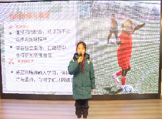 体育李老师为同学们带来精彩的冬奥宣讲,讲述运动健儿们背后的拼搏故事。而更让同学们倍感亲切的是,两位寒假期间远赴云南参加足球集训的校园女将——四(1)中队的张昕怡和四(3)班的徐梓桐,也分享了她们的成长故事。